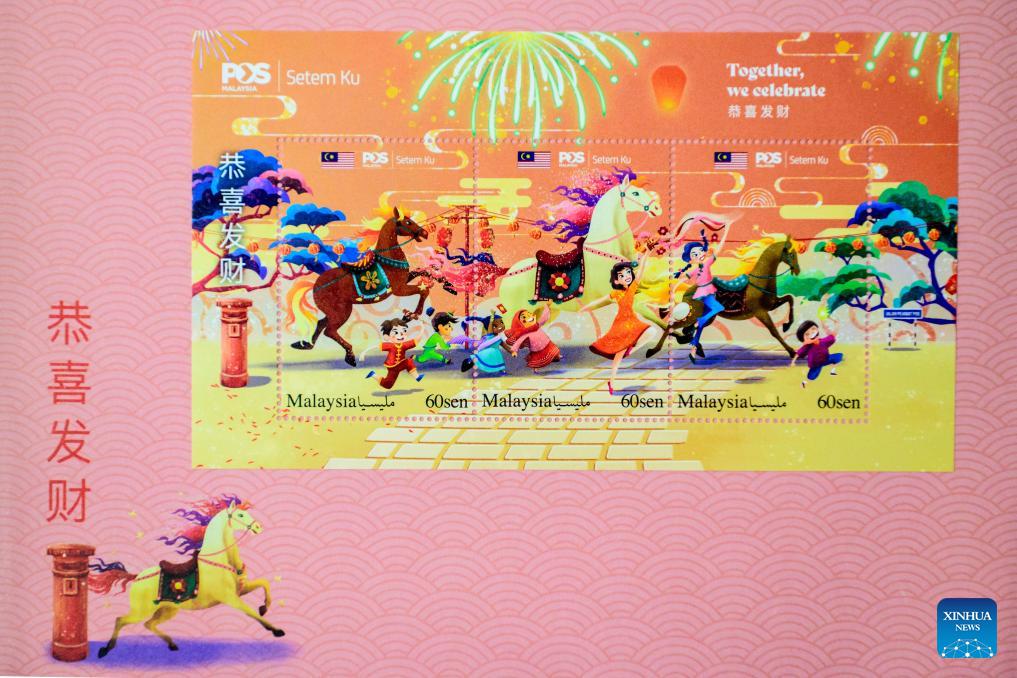 This photo taken on Jan. 29, 2026 shows horse-themed stamps marking the Year of the Horse in Kuala Lumpur, Malaysia. Malaysia issused a set of stamps to celebrate the Year of the Horse on Thrusday. (Photo by Chong Voon Chung/Xinhua)