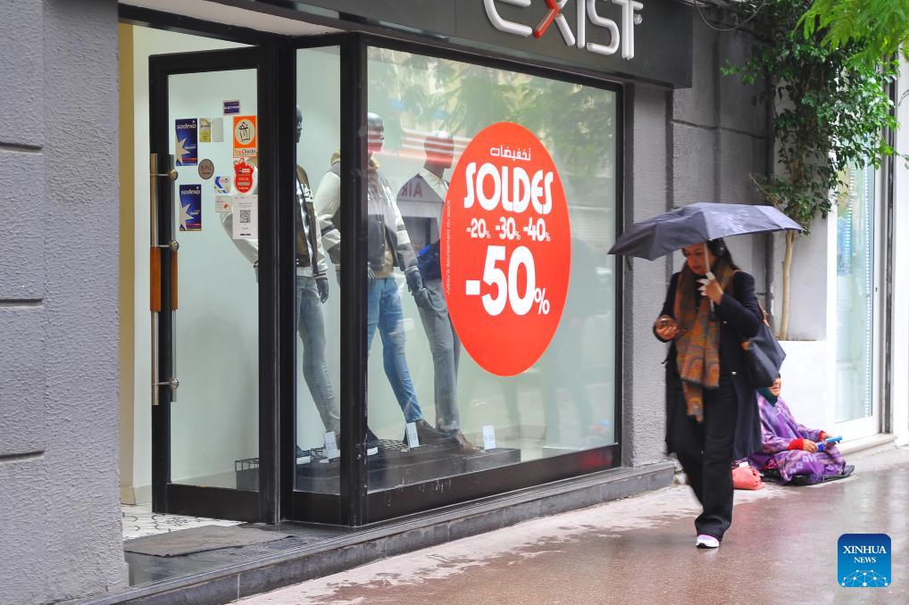 People walk past a shop during winter sales in Tunis, Tunisia, on Jan. 29, 2026. (Photo by Adel Ezzine/Xinhua)