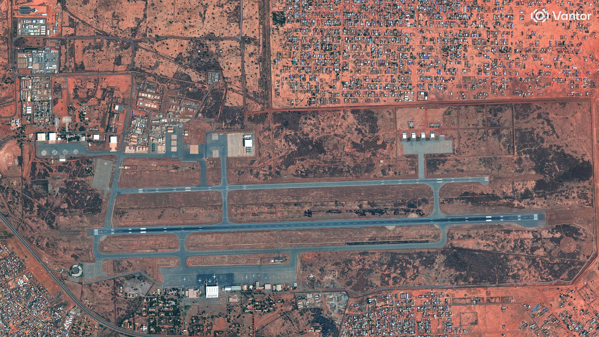 The Vantor satellite image shows an overview of the Niamey airport runway and the surrounding military bases after an attack in Niamey, Niger. (Photo: CFP)
