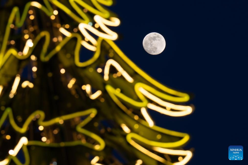 A bright moon is seen over Warsaw, Poland on Jan. 31, 2026. (Photo by Jaap Arriens/Xinhua)