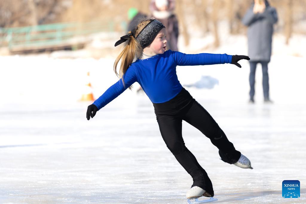 A young girl participates in an ice skating performance during an ice and snow festival in Vladivostok, Russia, on Jan. 31, 2026. (Photo by Andrey Matveenko/Xinhua)