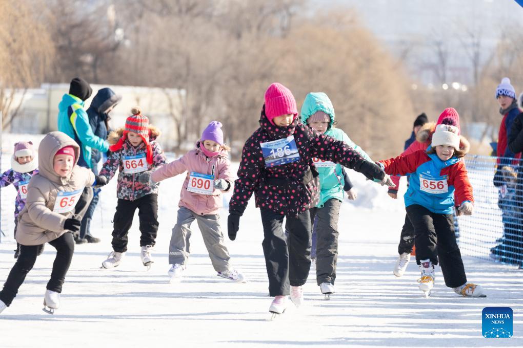 Children participate in an ice skating competition during an ice and snow festival in Vladivostok, Russia, on Jan. 31, 2026. (Photo by Andrey Matveenko/Xinhua)