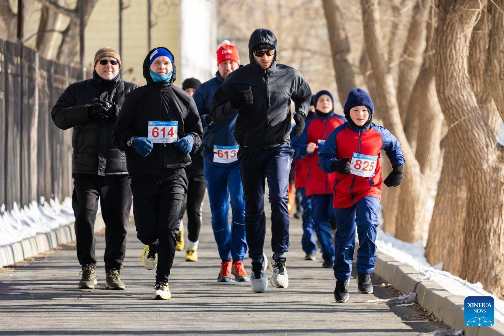 People participate in a running race during an ice and snow festival in Vladivostok, Russia, on Jan. 31, 2026. (Photo by Andrey Matveenko/Xinhua)