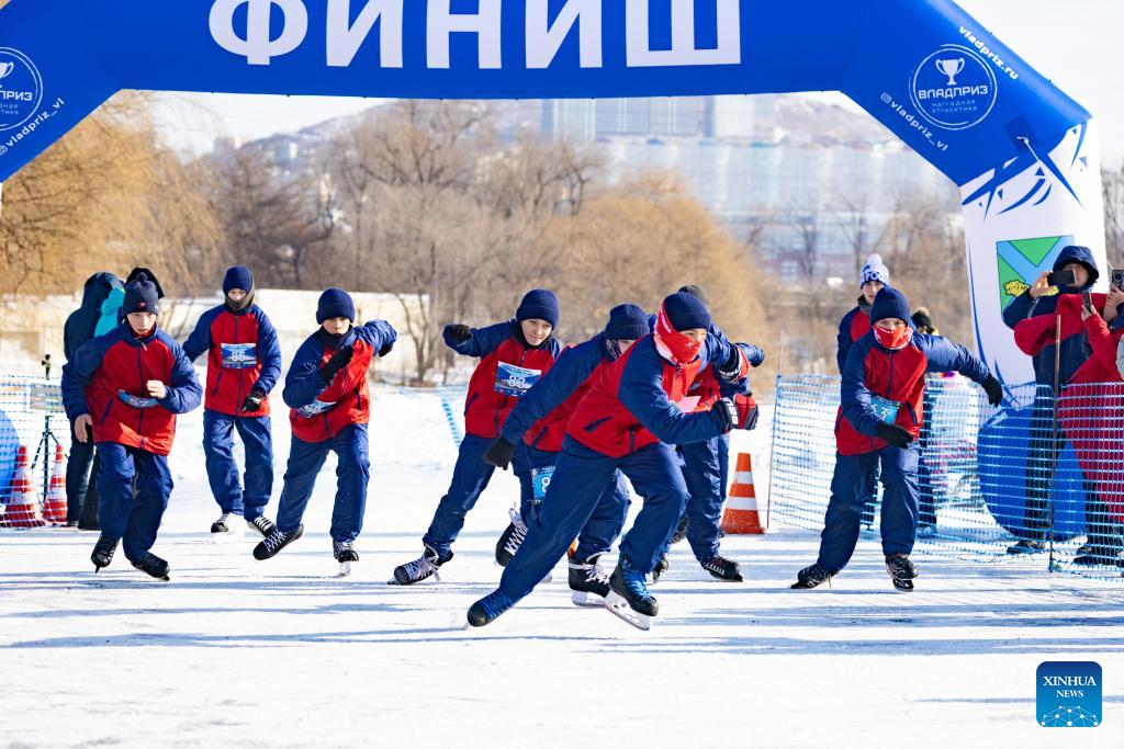 People participate in an ice skating competition in Vladivostok, Russia, on Jan. 31, 2026. (Photo by Andrey Matveenko/Xinhua)