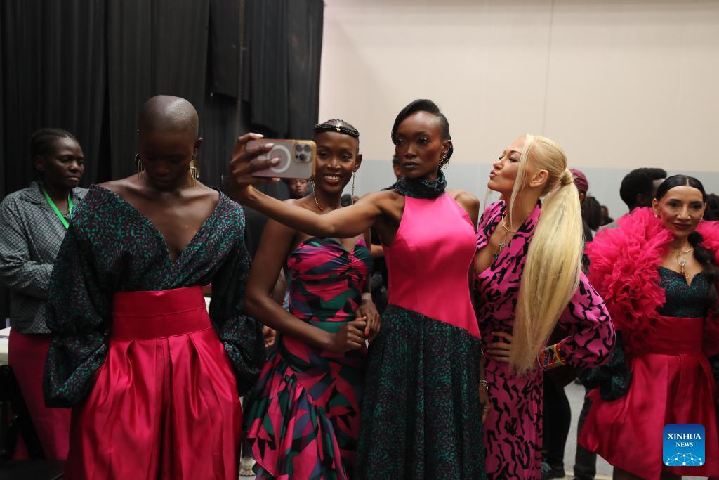 Models pose for selfies during the Nairobi Fashion Week at the Sarit Centre in Nairobi, Kenya, Jan. 31, 2026. (Photo by Henry Naminde/Xinhua)