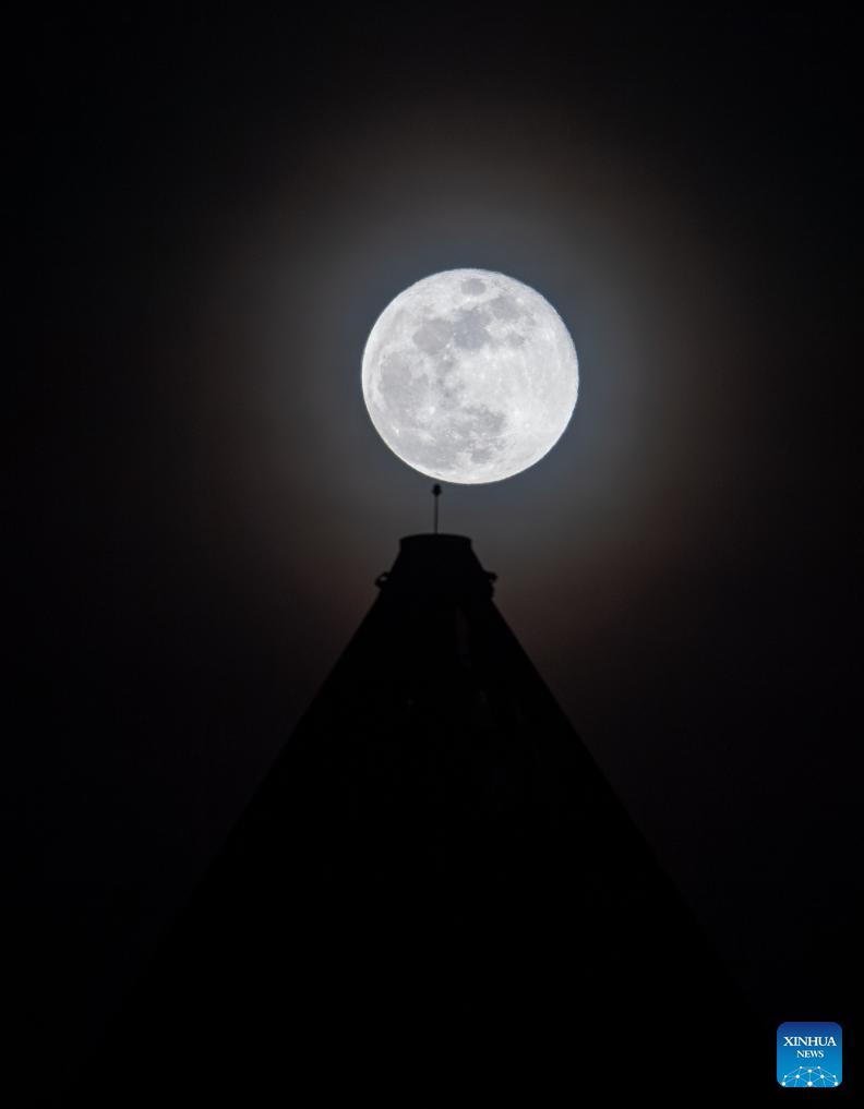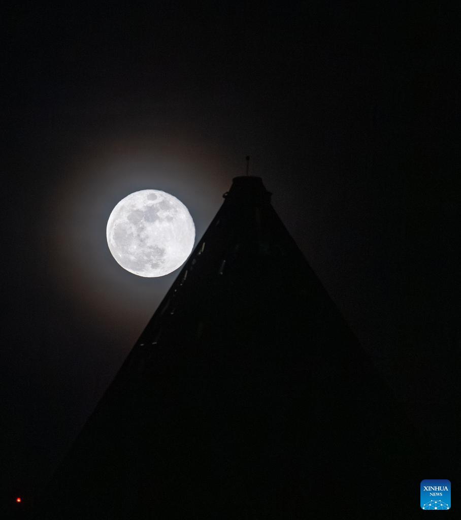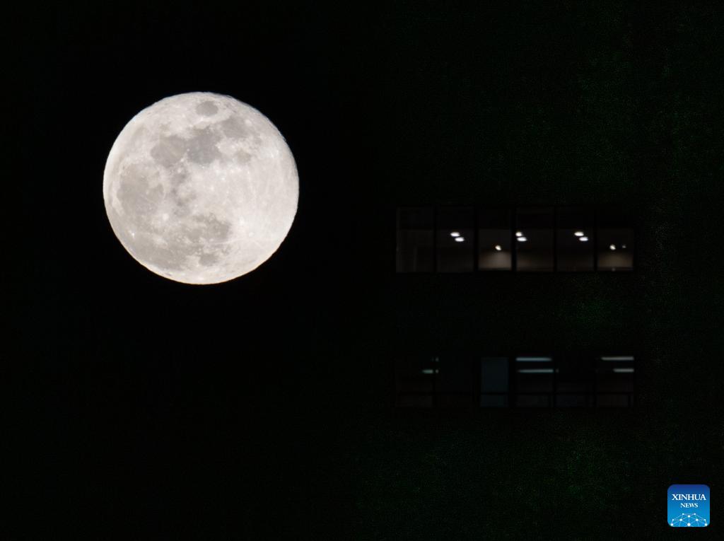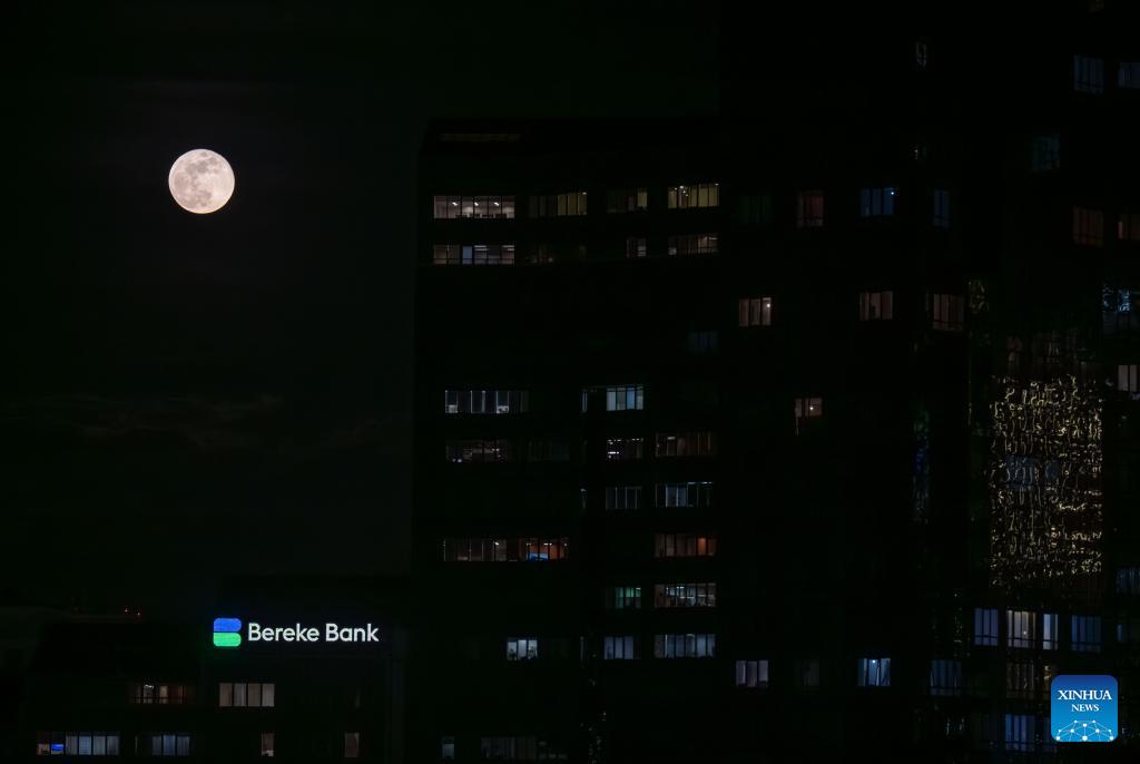 Photo taken on Feb. 2, 2026 shows a full moon in Almaty, Kazakhstan. (Xinhua/Li Renzi)