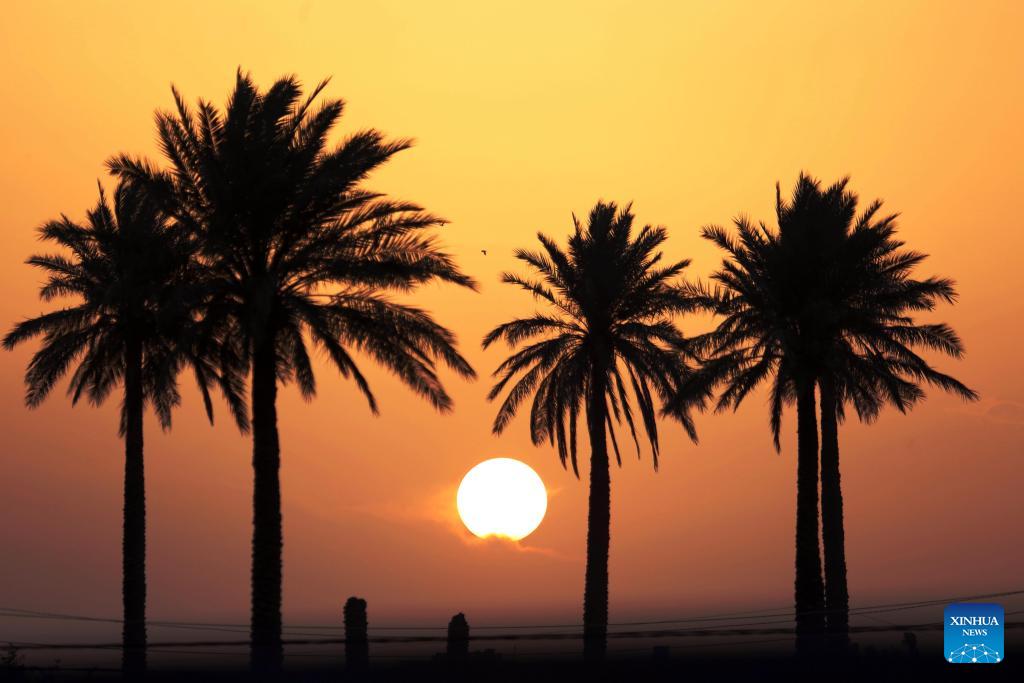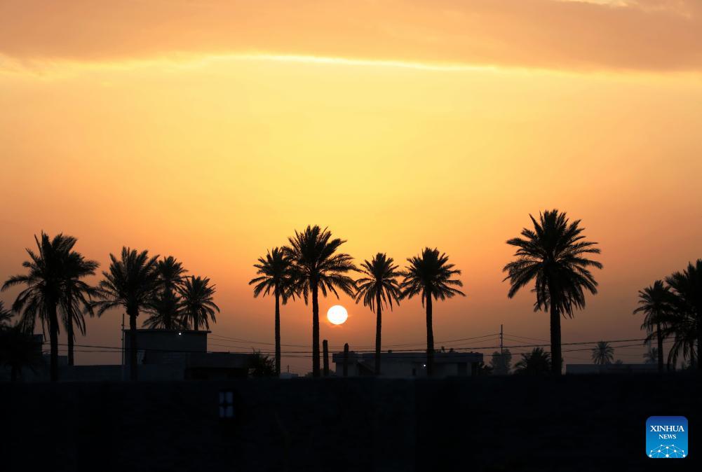 This photo taken on Feb. 2, 2026 shows the sunset scenery in Baghdad, Iraq. (Xinhua/Khalil Dawood)