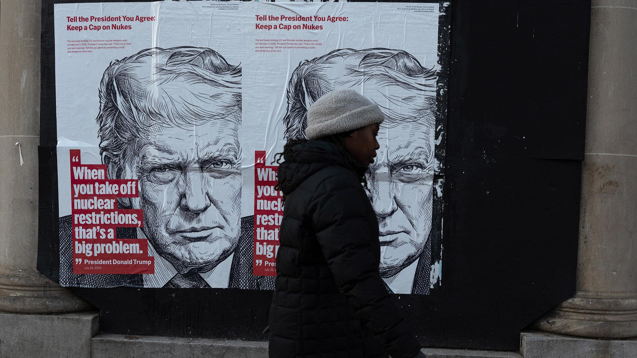 A woman walks past a wall poster that warns of the impending expiration of the New START treaty in Washington, D.C., US, January 30, 2026. (Photo: VCG)