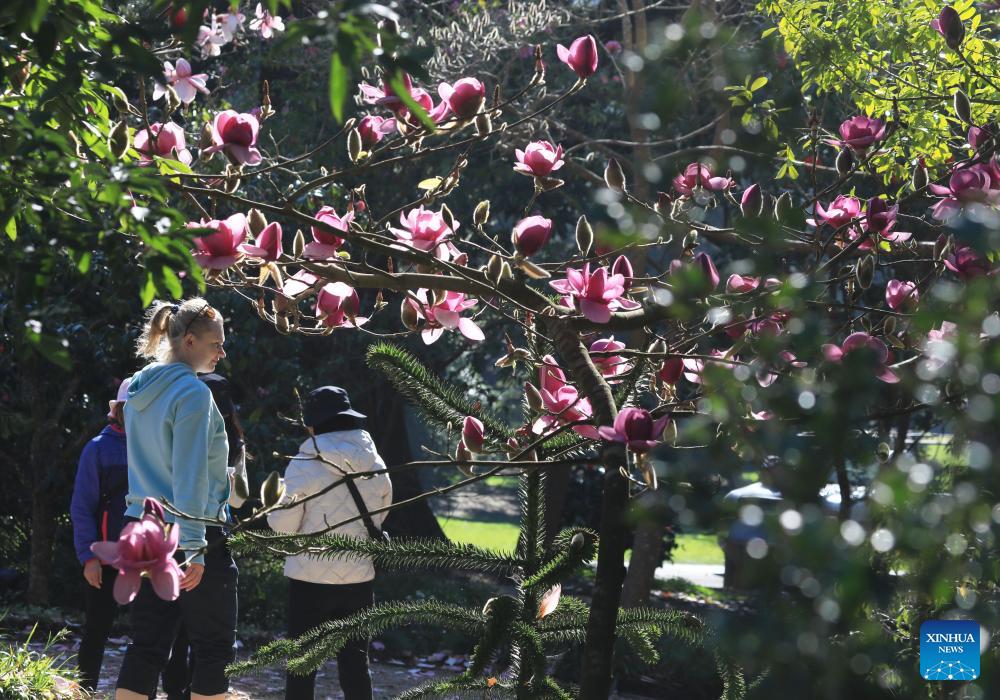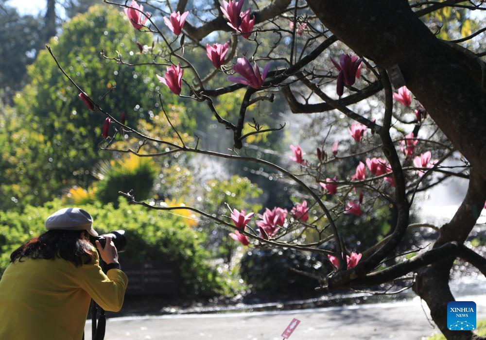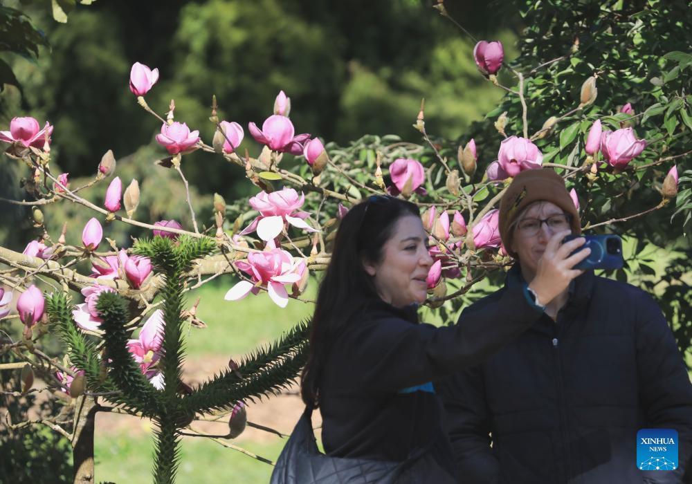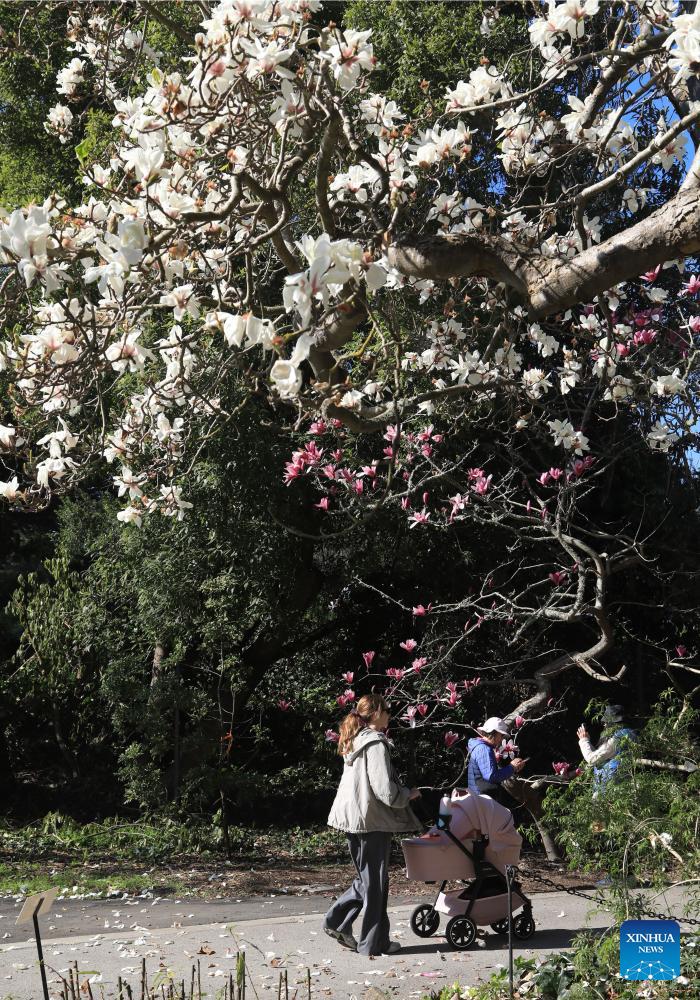 Visitors view Magnolia blossoms in San Francisco, the United States, Feb. 3, 2026. (Photo by Liu Yilin/Xinhua)