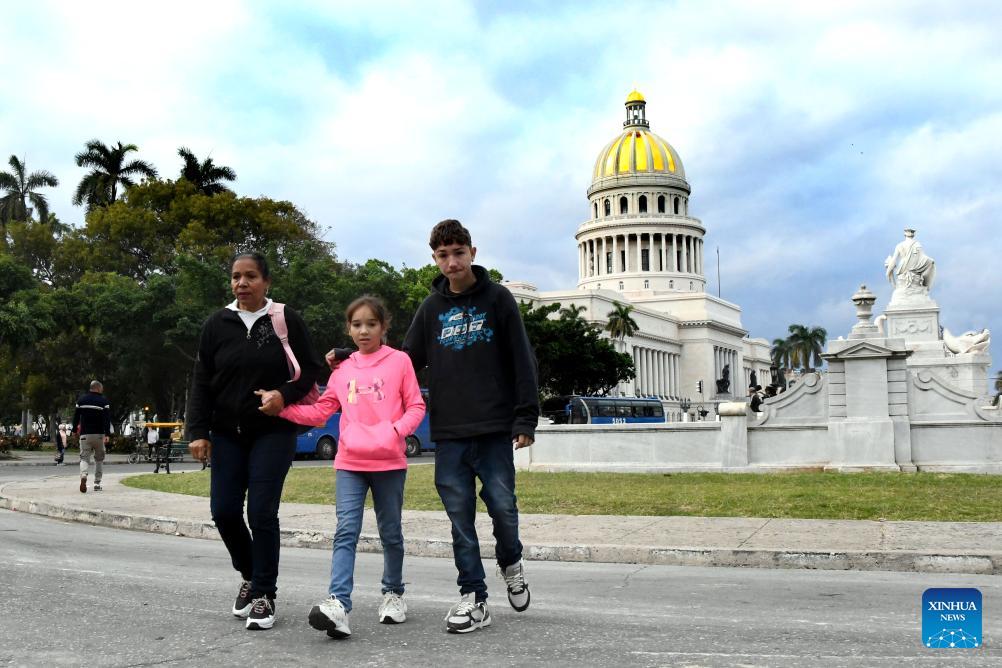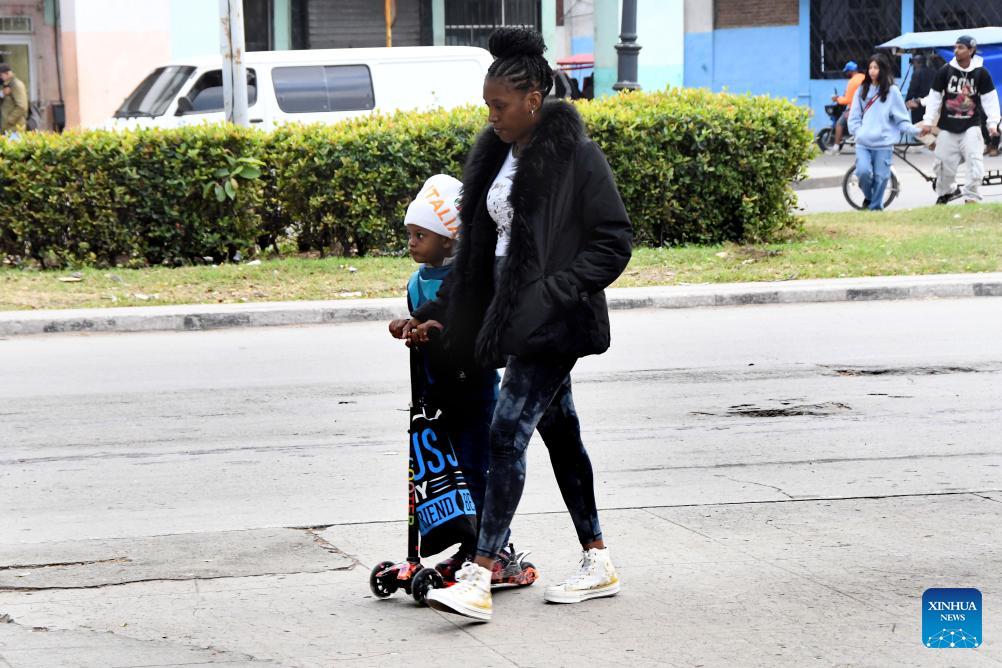 Local people wearing heavy clothing walk along a street in Havana, capital of Cuba on Feb. 3, 2026. The Cuban Institute of Meteorology reported on Tuesday that a weather station in the province of Matanzas, western Cuba, recorded a temperature of 0 degrees Celsius at 7:00 that morning. This marks the first time in recorded history that the temperature in this tropical nation has reached the freezing point, breaking the national low-temperature record of 0.6 degrees Celsius set in February 1996. (Xinhua/Joaquin Fernandez)
