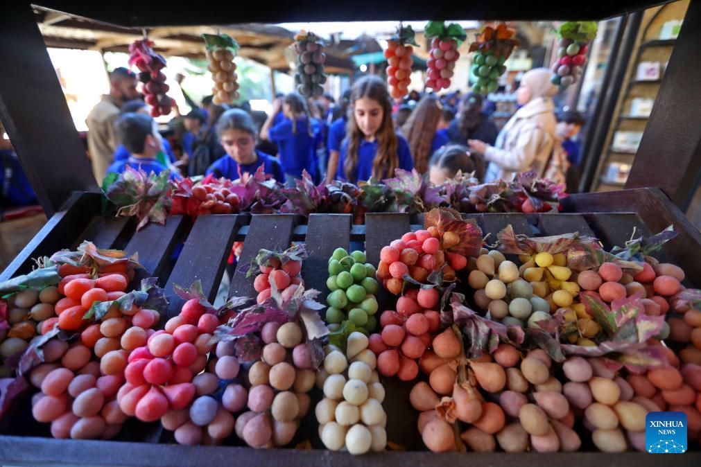 Students select bunches of grapes crafted from soap at the Soap Museum in Tripoli, northern Lebanon, Feb. 5, 2026. (Photo by Bilal Jawich/Xinhua)