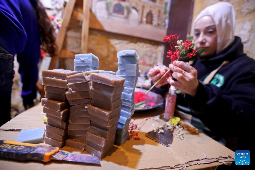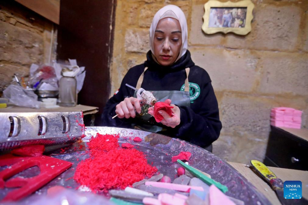 A woman makes soap flowers at the Soap Museum in Tripoli, northern Lebanon, Feb. 5, 2026. (Photo by Bilal Jawich/Xinhua)