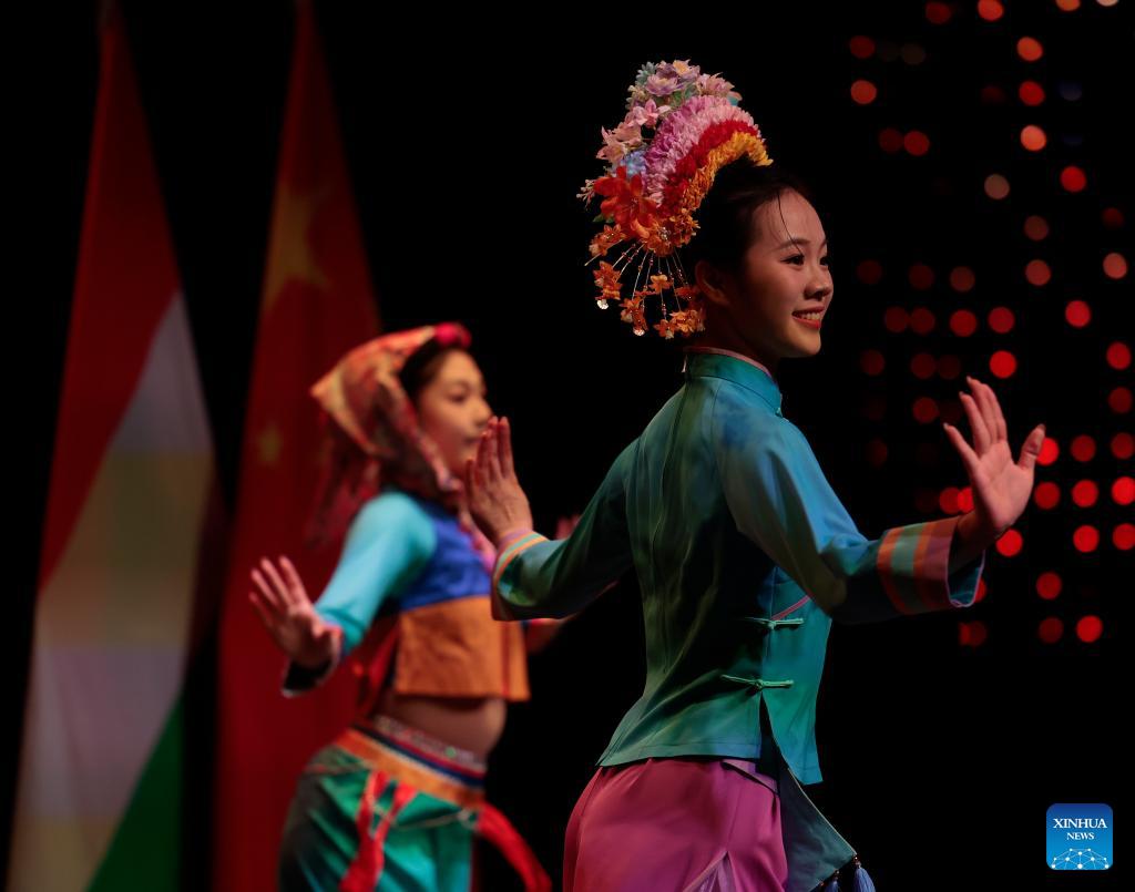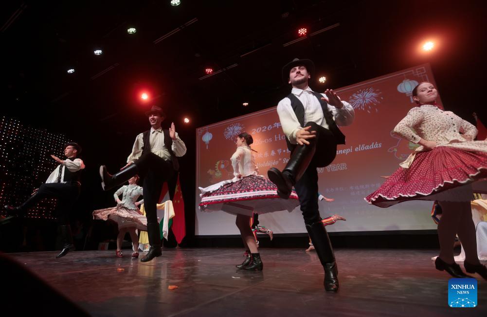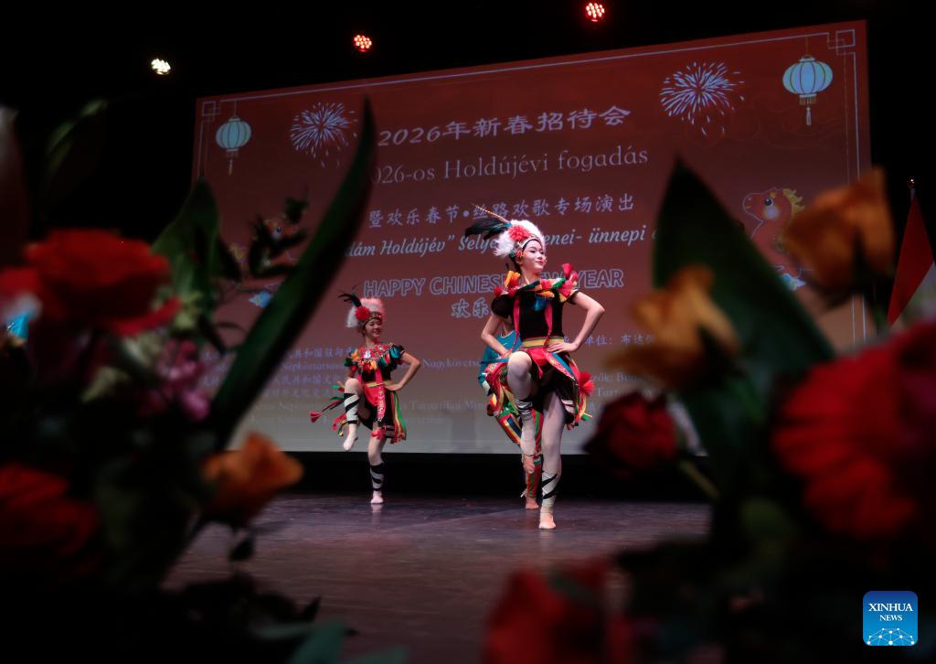 Artists perform at a Spring Festival reception hosted by the Chinese Embassy in Budapest, Hungary on Feb. 5, 2026. (Photo by Laszlo Balogh/Xinhua)