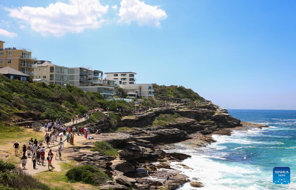 Visitors view exhibits at the seaside in Sydney, Australia, October 24, 2025. (Photo: Xinhua)