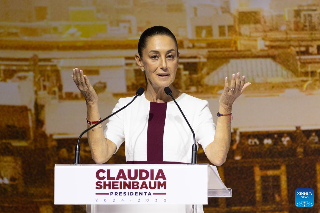 Mexican president-elect Claudia Sheinbaum speaks during a meeting of the coalition led by the governing National Regeneration Movement (Morena) in Mexico City, capital of Mexico, June 18, 2024. (File photo: Xinhua)