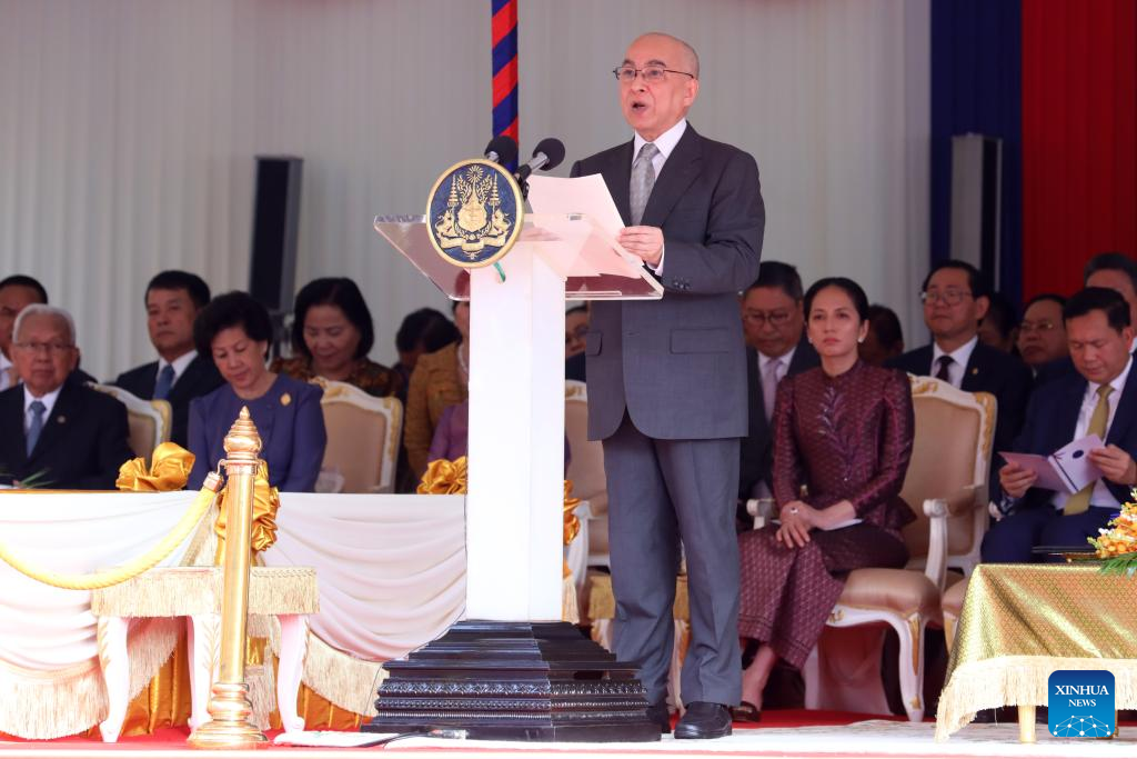 Cambodian King Norodom Sihamoni delivers a speech during the inauguration of the residence of the Great Supreme Patriarch Chuon Nath at Unnalom Pagoda in Phnom Penh, Cambodia on February 17, 2025. (File photo: Xinhua)