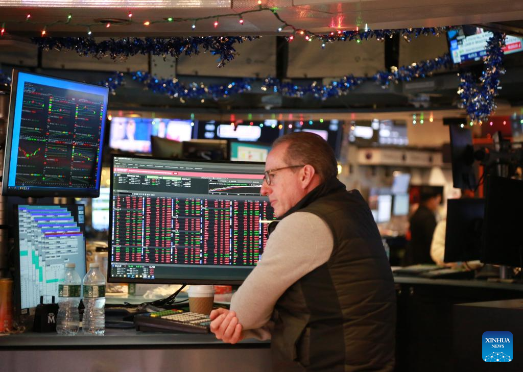A trader works on the floor of the New York Stock Exchange in New York, the United States, on Dec. 12, 2025. (Photo: Xinhua)
