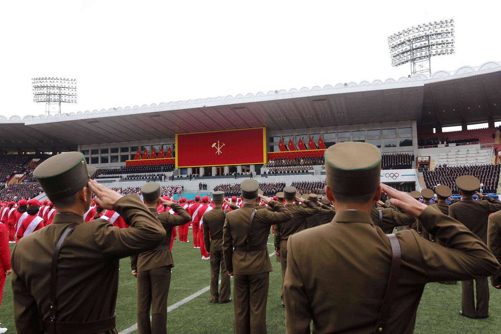 A meeting of presenting letters of loyalty to their leader Kim Jong Un is held at Kim Il Sung Stadium in Pyongyang, North Korea Tuesday, Oct. 7, 2025, on the occasion of the 80th anniversary of the founding of North Korea's ruling Worker's Party of Korea. (Photo: AP)