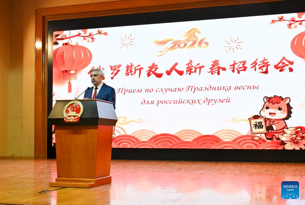 Ivan Melnikov, first deputy speaker of Russia's State Duma, speaks at the Spring Festival reception for Russian friends in Moscow, Russia, on Feb. 6, 2026. (Photo: Xinhua)