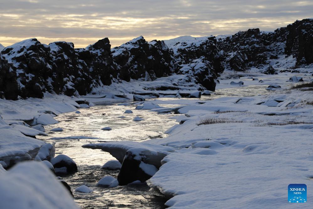 This photo taken on Feb. 7, 2026 shows a view of the Thingvellir National Park on Iceland. (Xinhua/Zhu Haochen)