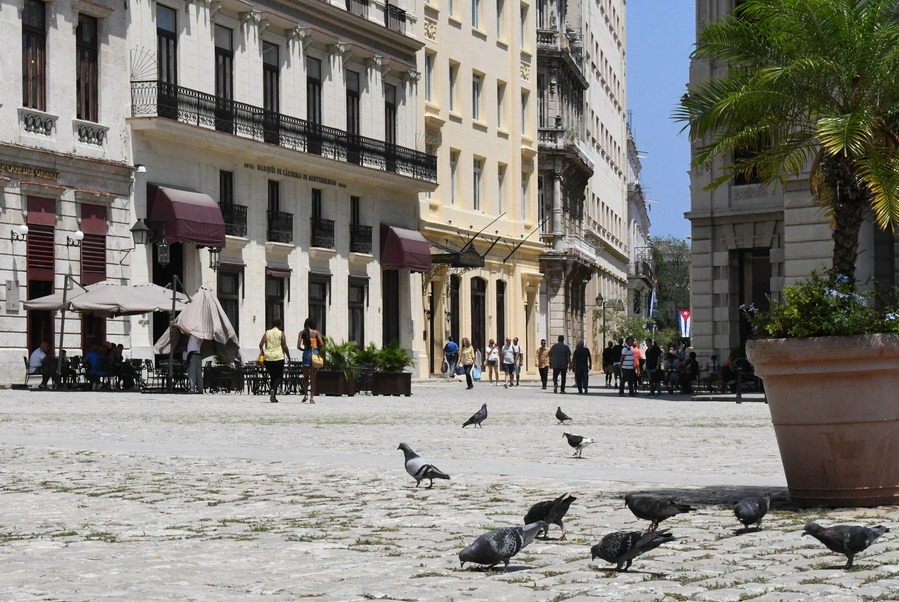 Doves forage at the historic center of the city of Havana, Cuba, May 4, 2023. (Photo: Xinhua)