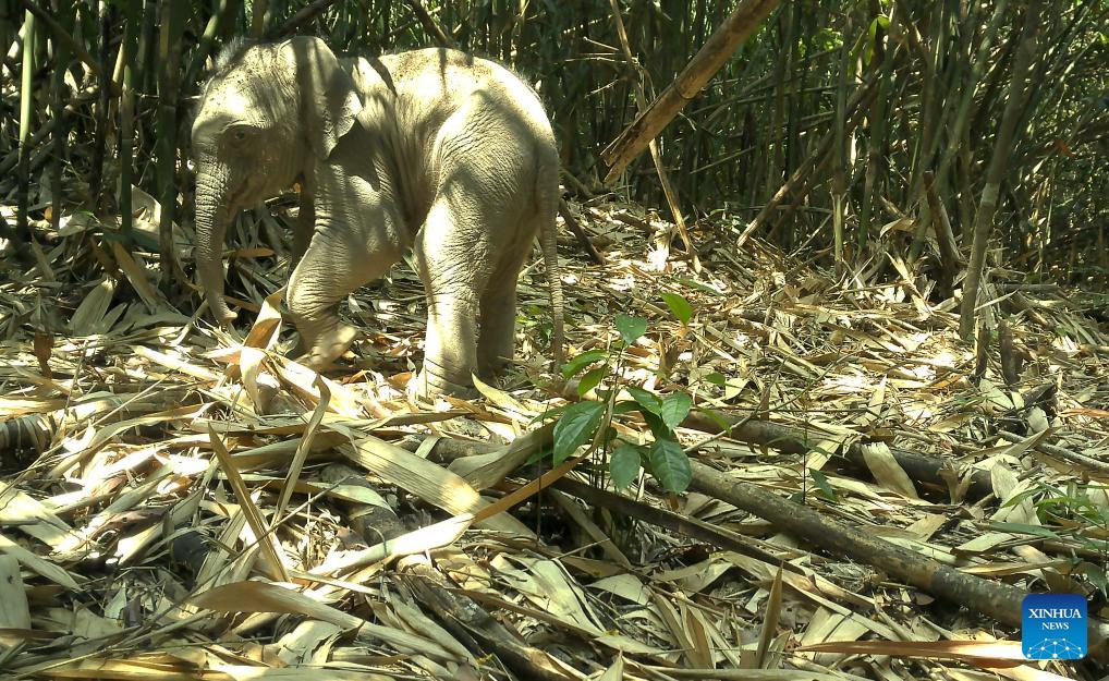 A camera-trap captures a baby Asian elephant at the Virachey National Park in northeastern Cambodia on April 9, 2025. A camera-trap biodiversity survey has revealed the remarkable diversity of wildlife species inhabiting the vast, untouched, and biodiverse Virachey National Park in northeastern Cambodia, said a joint press release on Wednesday.(Fauna & Flora/Handout via Xinhua)