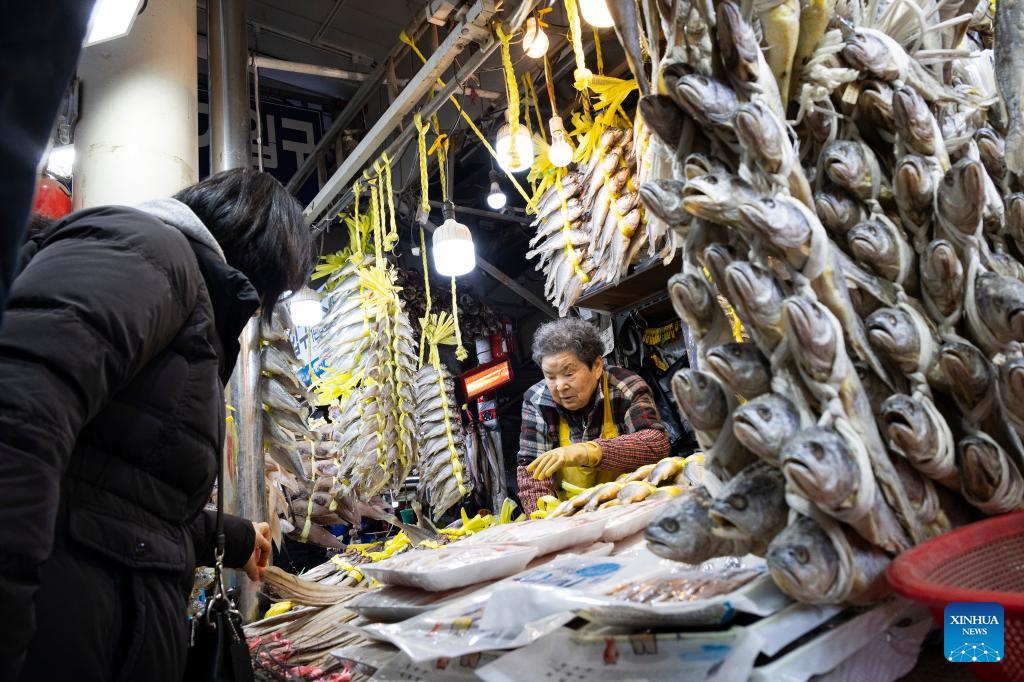 People visit a market ahead of the Lunar New Year holiday in Seoul, South Korea, Feb. 12, 2026. (Photo by Jun Hyosang/Xinhua)