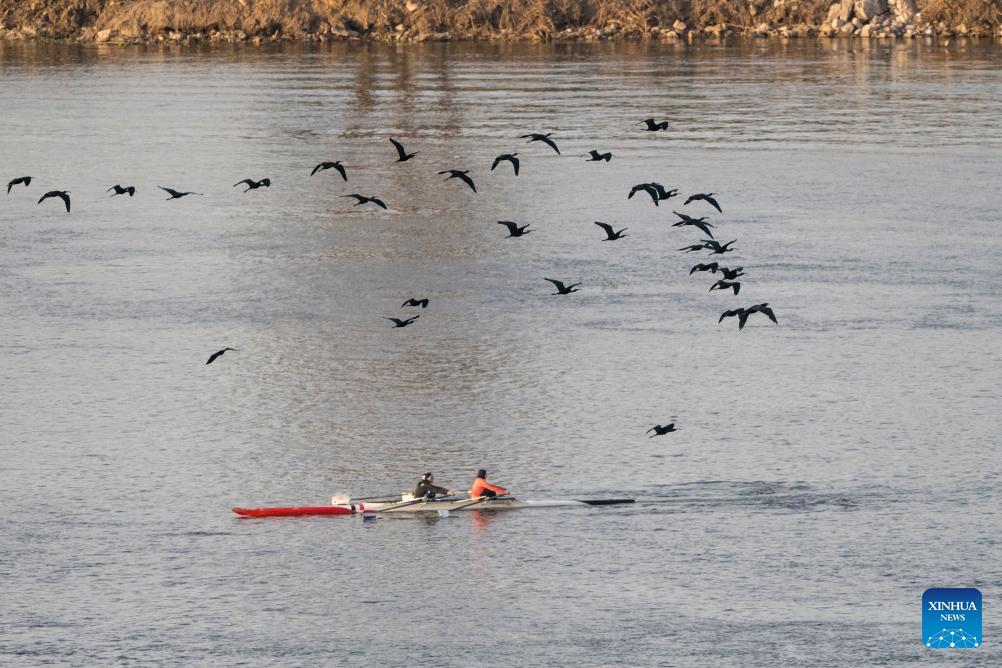 Migratory birds fly above the Nile River in Cairo, Eygpt, on Feb. 13, 2026. (Xinhua/Liu Minhao)
