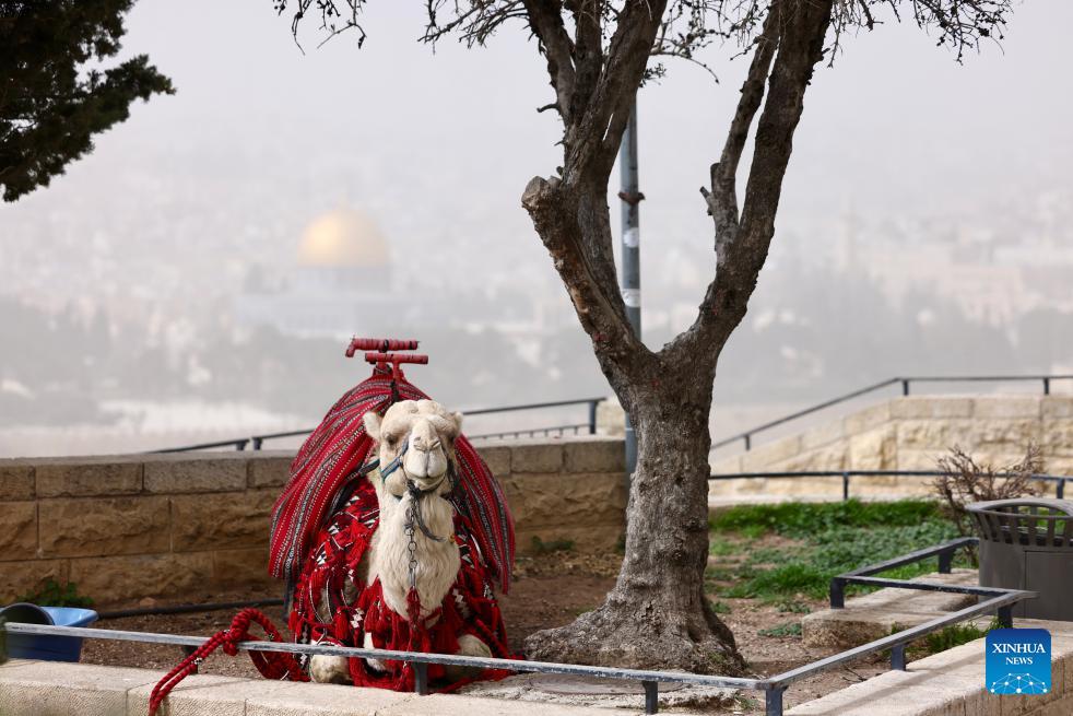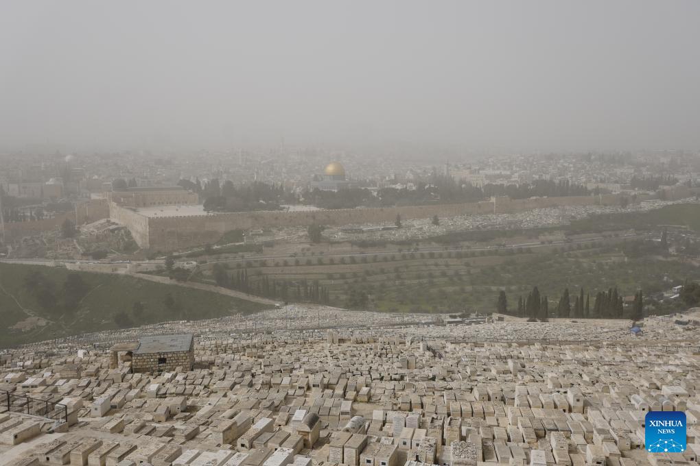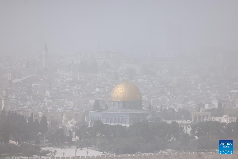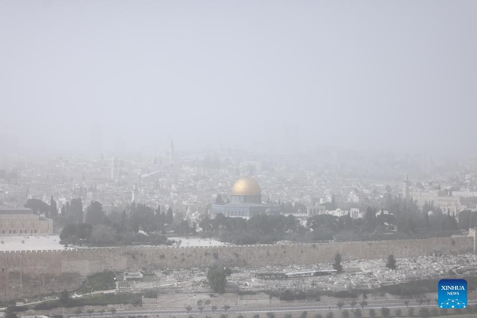 The Old City of Jerusalem is seen during a dust storm on Feb. 14, 2026. (Photo by Jamal Awad/Xinhua)