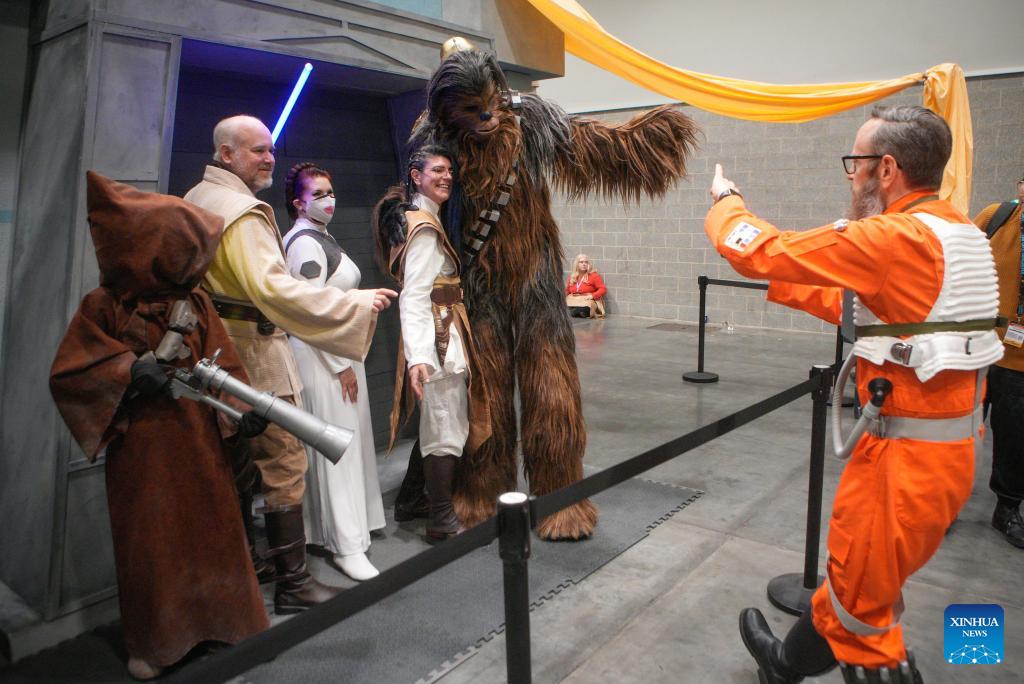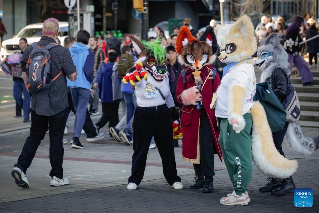 Participants pose for group photos during the Fan Expo 2026 in Vancouver, Canada, on Feb. 14, 2026. As one of the largest pop-culture fan conventions and comics, sci-fi, anime and gaming expos in Canada, the annual event kicked off here on Saturday and will run until Feb. 16. (Photo by Liang Sen/Xinhua)
