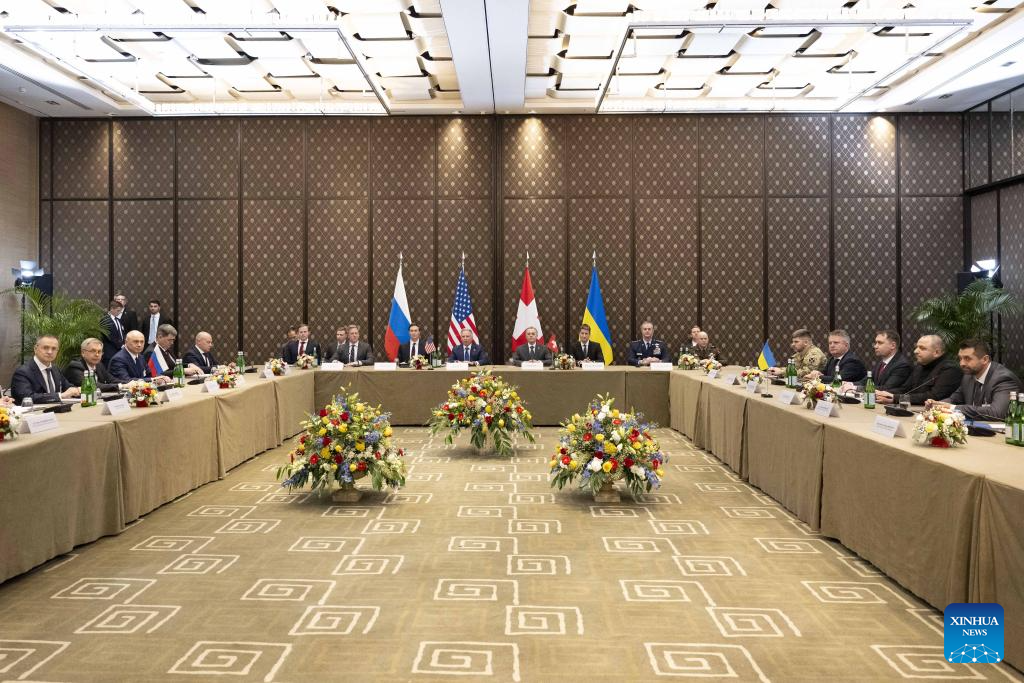 This photo taken on Feb. 17, 2026 shows the scene of trilateral talks among Ukraine, the United States and Russia in Geneva, Switzerland. (Photo: Xinhua)