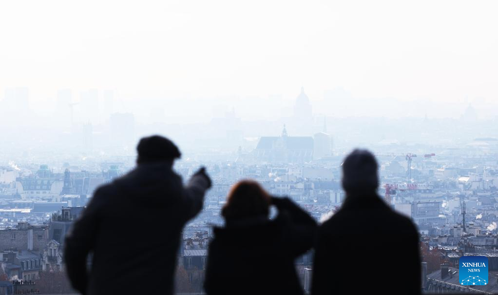 People look at the city of Paris covered with snow at the Montmartre in Paris, France, Dec. 14, 2022. (Photo: Xinhua)