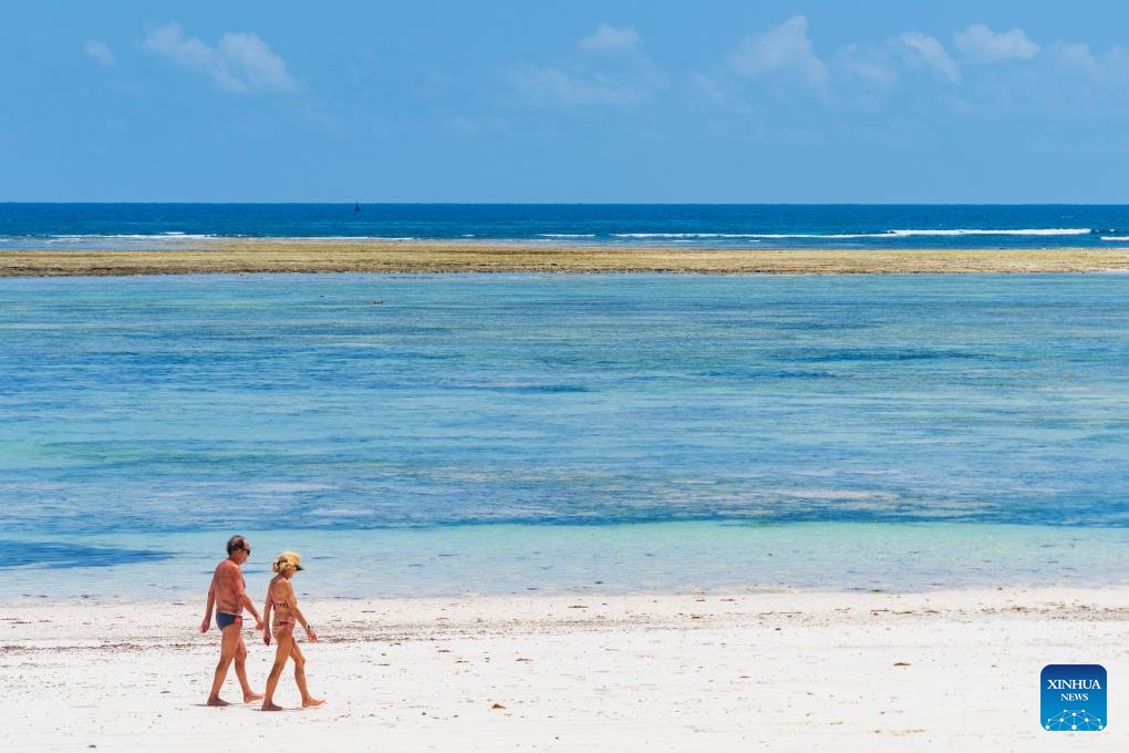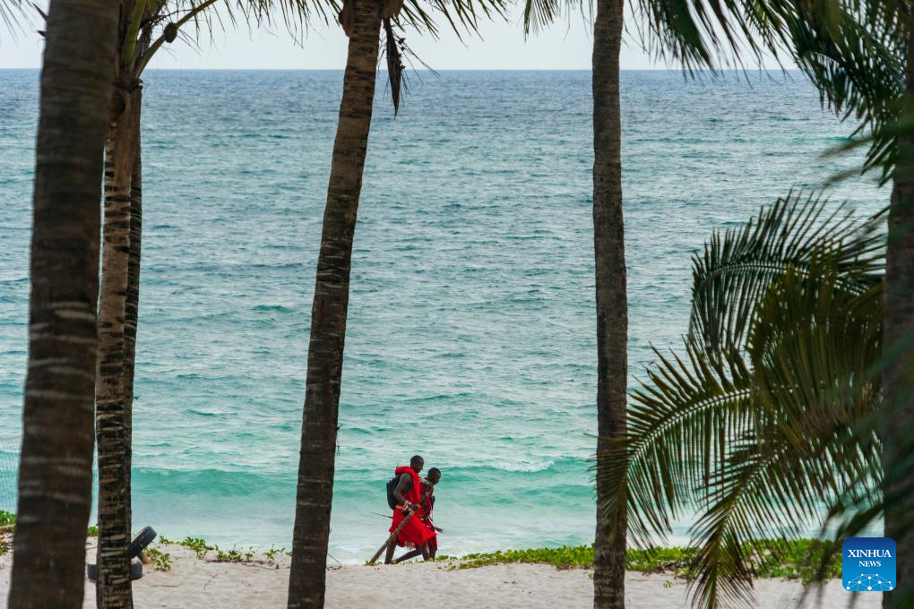 People take a walk on the Indian Ocean coast in Mombasa, Kenya, Feb. 18, 2026. (Photo: Xinhua)