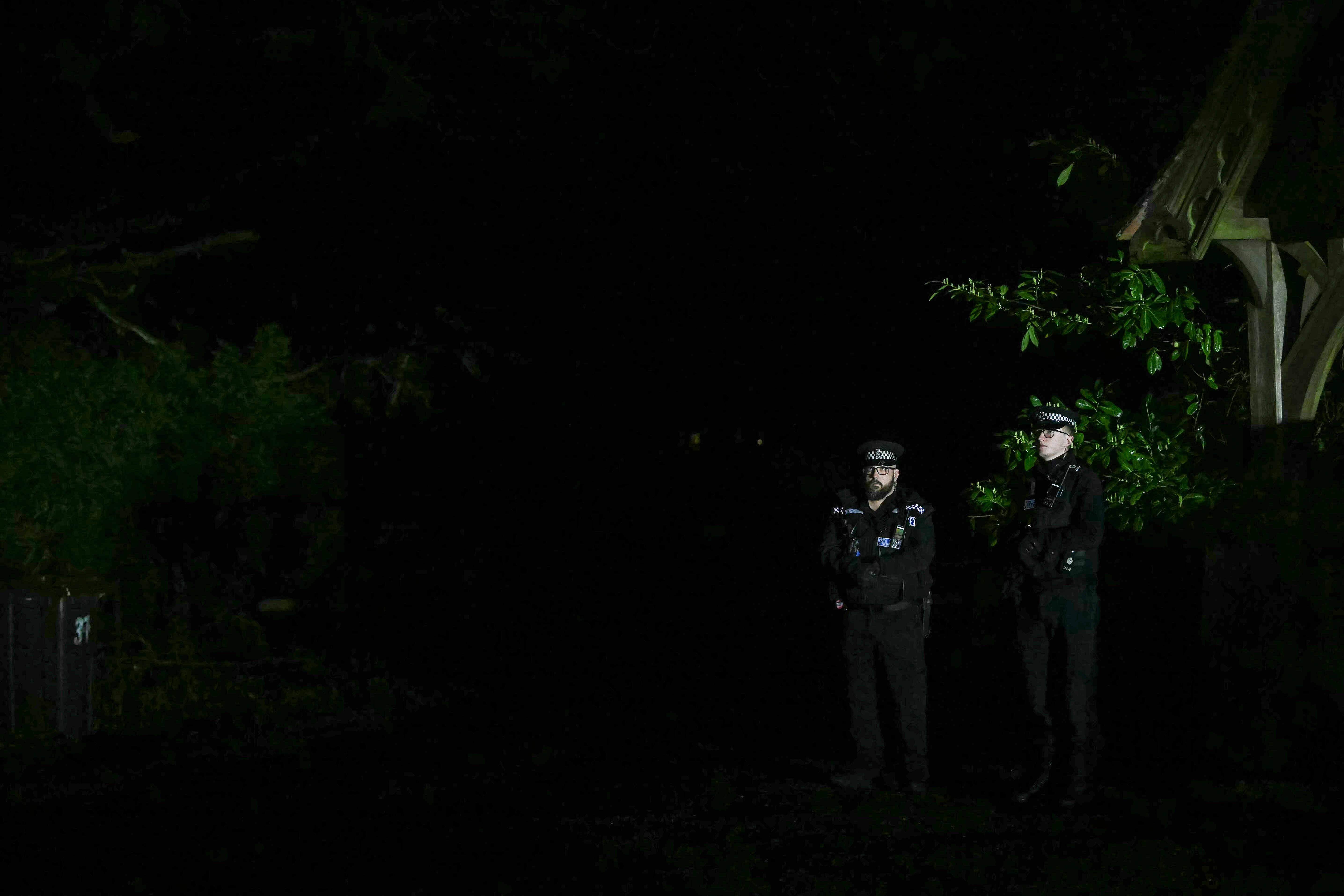 Policemen stand at an entrance to Wood Farm on the royal family's Sandringham Estate in Norfolk, eastern England on February 19, 2026, where former prince Andrew was arrested earlier in the day. (Photo: Xinhua)