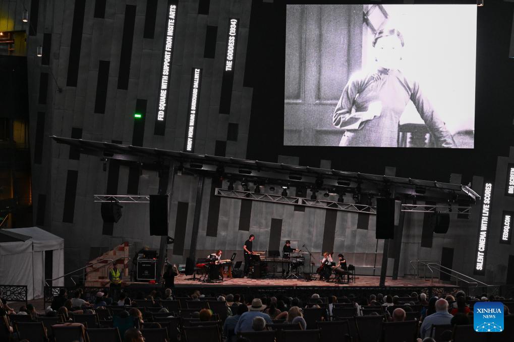 The Goddess, the 1934 classic Chinese silent movie, is shown at the Federation Square in Melbourne, Australia, on Feb. 20, 2026. This is the last silent movie shown here from Feb. 16 to 20. (Xinhua/Xu Haijing)