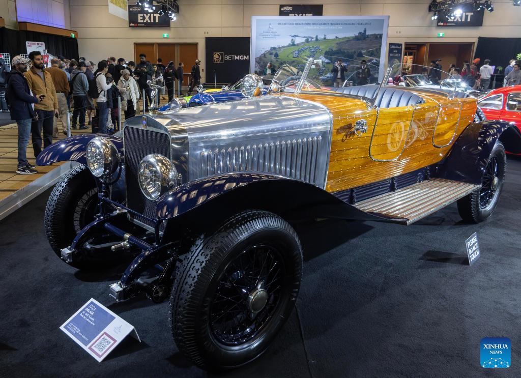 People view a 1924 Delage GL Skiff Torpedo at the 2026 Canadian International AutoShow (CIAS) in Toronto, Canada, on Feb. 20, 2026. Showcasing a lineup of iconic collector automobiles, the 2026 CIAS runs from Feb. 13 to 22. (Photo by Zou Zheng/Xinhua)
