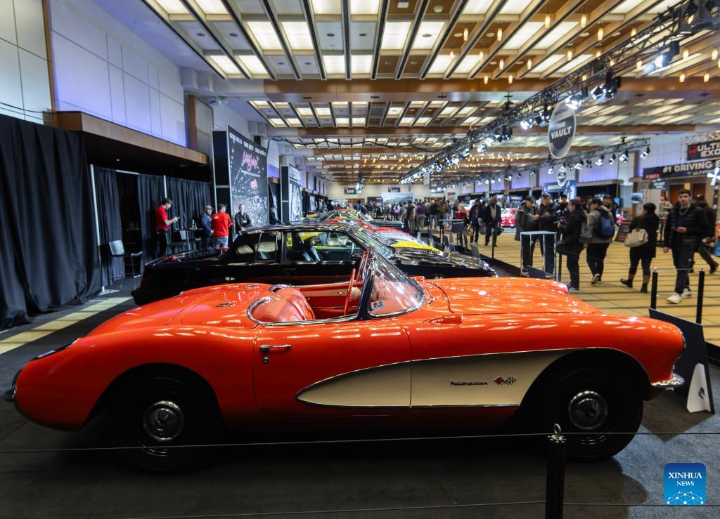 People view vintage cars at the 2026 Canadian International AutoShow (CIAS) in Toronto, Canada, on Feb. 20, 2026. Showcasing a lineup of iconic collector automobiles, the 2026 CIAS runs from Feb. 13 to 22. (Photo by Zou Zheng/Xinhua)