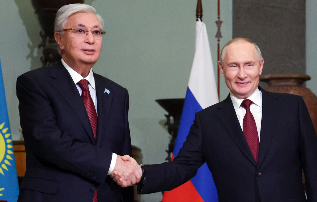 Russian President Vladimir Putin, right, and Kazakhstan's President Kassym-Jomart Tokayev shake hands during their meeting on the sidelines of a summit of the Commonwealth of Independent States (CIS), a grouping of former Soviet nations at the State Hermitage Museum in St. Petersburg, Russia, on Monday, Dec. 22, 2025. (Photo: AP)