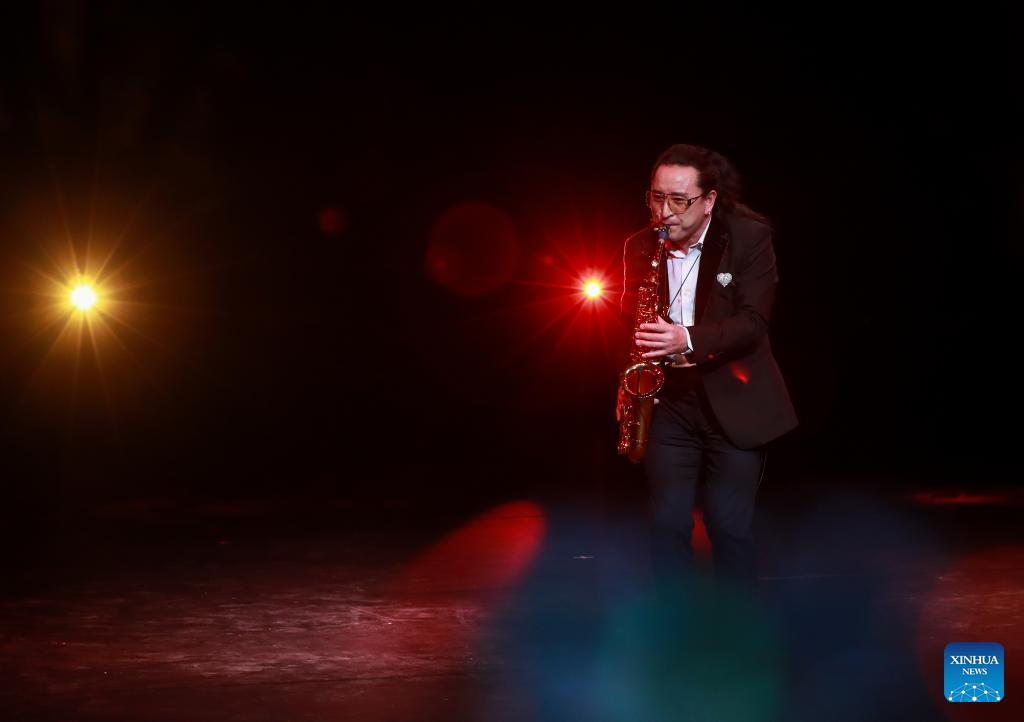 A saxophonist performs during the Lunar New Year Concert 2026 at Sydney Opera House in Sydney, Australia, Feb. 21, 2026. (Xinhua/Ma Ping)