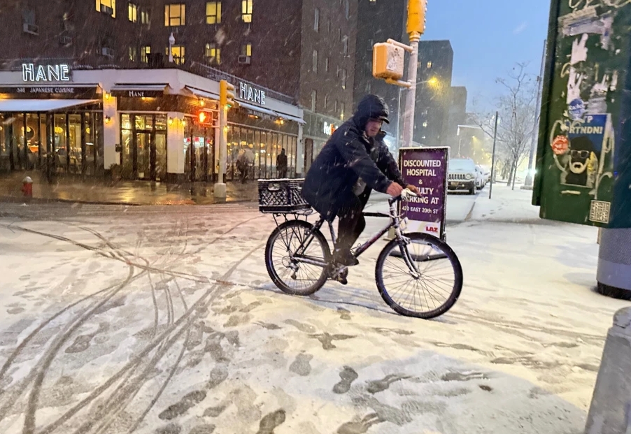 NEW YORK, Feb. 22 (Xinhua) -- New York City (NYC) Mayor Zohran Mamdani on Sunday declared a state of emergency and issued a travel ban as a winter storm hit the region, causing hundreds of flight cancellations.