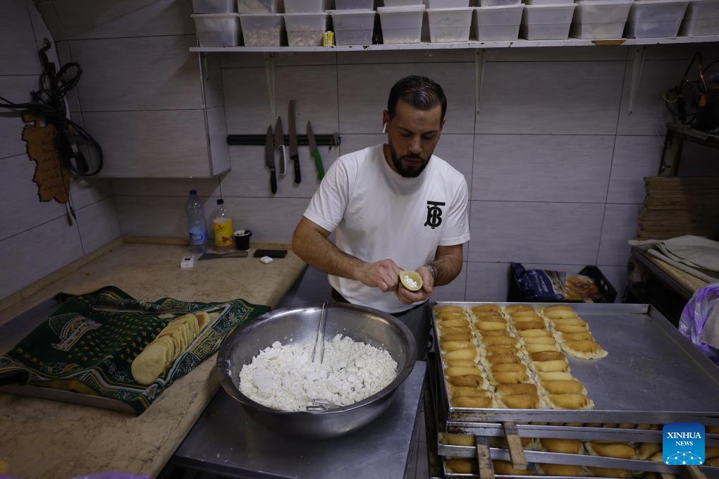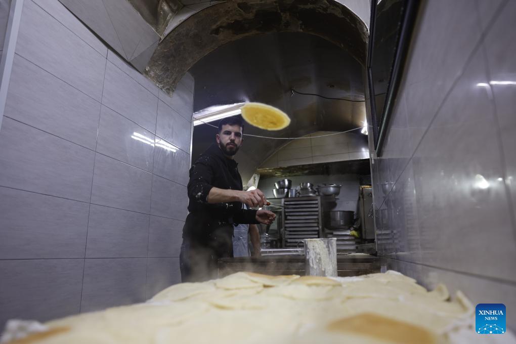 A man makes traditional sweets known as "Qatayef" during the holy month of Ramadan in the Old City of Jerusalem, Feb. 22, 2026. (Photo by Jamal Awad/Xinhua)