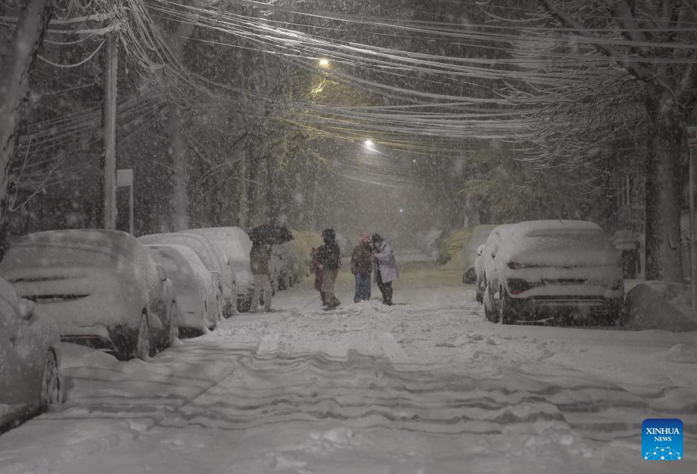 NEW YORK, Feb. 22 (Xinhua) -- New York City (NYC) Mayor Zohran Mamdani on Sunday declared a state of emergency and issued a travel ban as a winter storm hit the region, causing hundreds of flight cancellations.