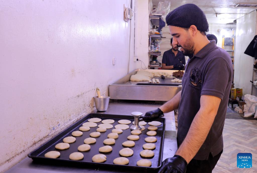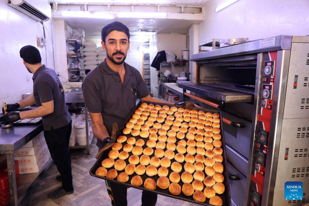 A worker makes traditional sweets during the holy month of Ramadan in Baghdad, Iraq, on Feb. 23, 2026. (Xinhua/Khalil Dawood)