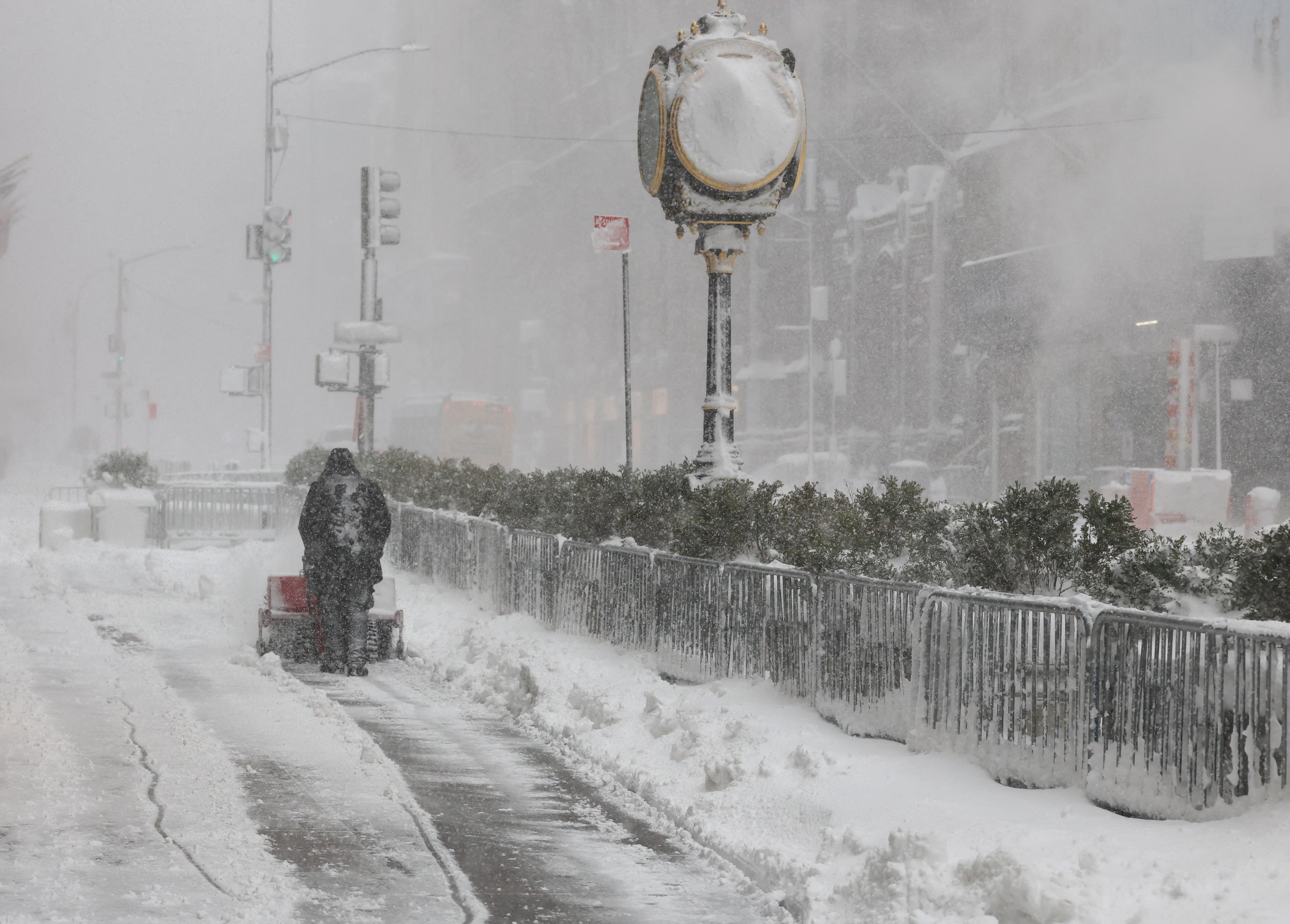 A person uses a snow blower to clear the front of the Trump Tower during a snow storm in New York February 23, 2026. (Photo: AFP)
