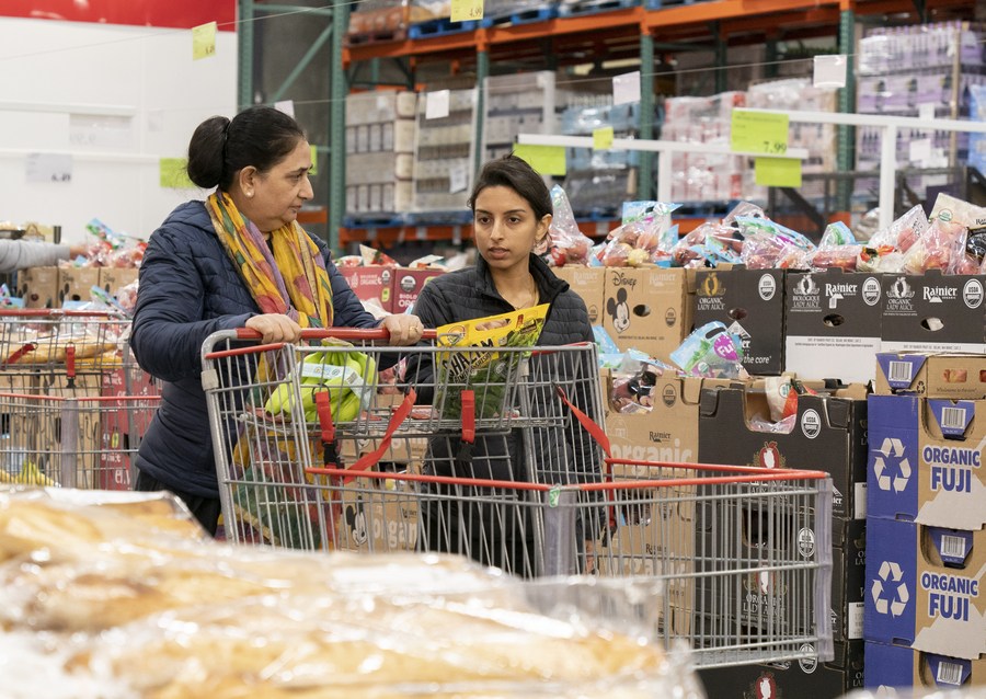 Customers shop at a supermarket in Foster City, California, the United States, on Dec. 21, 2023. (Photo: Xinhua)