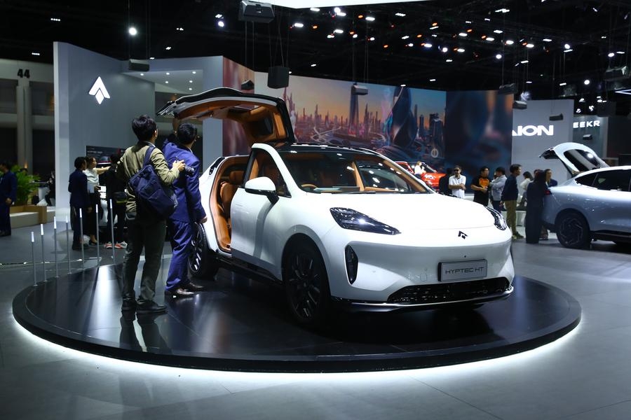 Visitors view an Aion Hyptec HT electric car during a media preview of the Thailand International Motor Expo 2024 in Nonthaburi, Thailand, Nov. 28, 2024. (File photo: Xinhua)