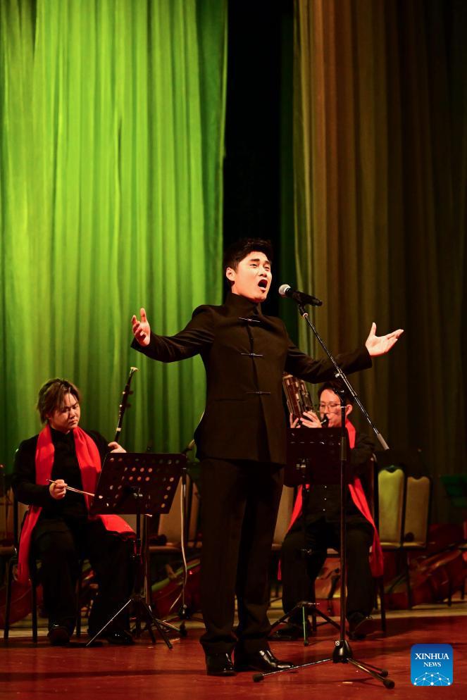 Artists perform at a "Happy Chinese New Year" celebration event in Ashgabat, Turkmenistan, Feb. 23, 2026. (Chinese Embassy in Turkmenistan/Handout via Xinhua)