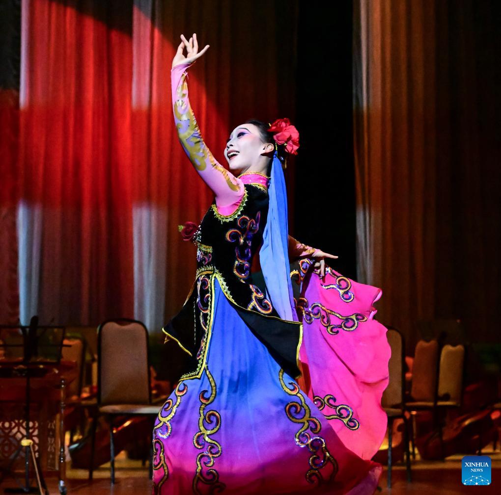 An artist performs a dance at a "Happy Chinese New Year" celebration event in Ashgabat, Turkmenistan, Feb. 23, 2026. (Chinese Embassy in Turkmenistan/Handout via Xinhua)
