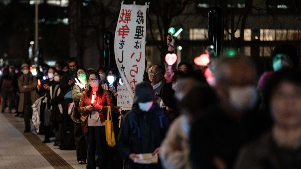 A large crowd of Japanese people gathered Tuesday evening in Tokyo to protest Prime Minister Sanae Takaichi's dangerous push for policies including accelerating constitutional revision, expanding military capabilities and strengthening national intelligence functions, voicing concerns about the country's future direction.