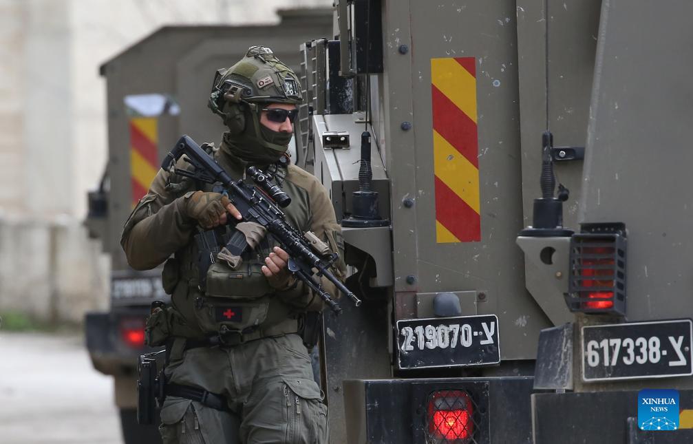 Photo taken on Feb. 26, 2026 shows Israeli soldiers during a military operation in the city of Nablus, in the West Bank. (Photo by Nidal Eshtayeh/Xinhua)